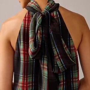 J.Crew Halter Top Blouse with Necktie in Stewart Tartan Chiffon Blend NWT L & XL
