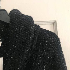 JCrew handknit black wool knit jacket with metallic thread--warmth with glamor!