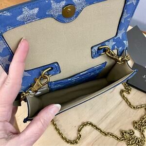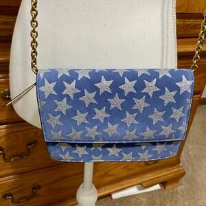 J.Crew Harrison Clutch Convertible Crossbody Bag Stars Blue White Glitter 4th of July NWT. Smoke and pet free home.
