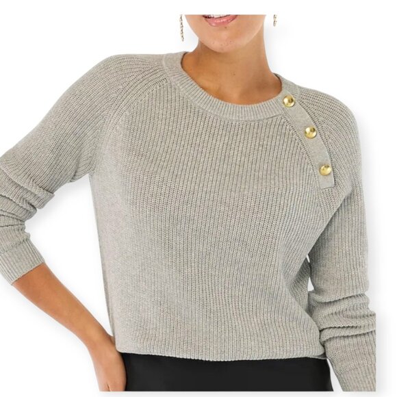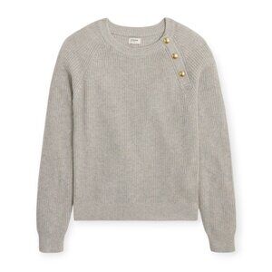 J.Crew Heather Dove Gray Button-Shoulder Ribbed Knit Sweater — Size M — NWT