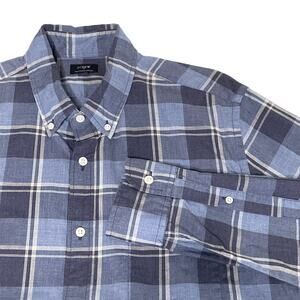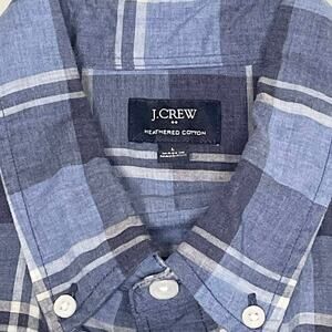 J.Crew Heathered Cotton Plaid Button-Down Shirt Men’s L Blue Long Sleeve Casual