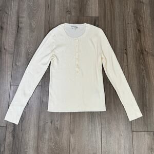 J.Crew Henley Sweater WMNS L Mountain White Long Sleeve Ribbed Tencel Crew Neck