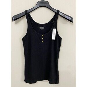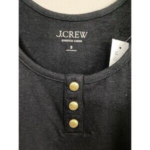 J.Crew Henley tank top in stretch linen blend Black NWT Size S Small