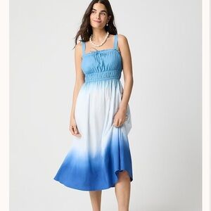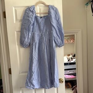 Super cute blue linen housedress from J.Crew is perfect for the spring! Has been worn once. Features balloon sleeves and slit up the front.