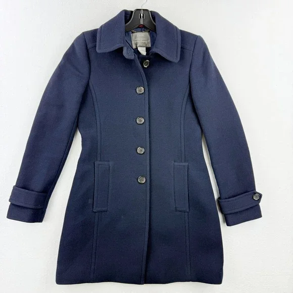 J.Crew Italian Double Cloth Wool Blend Car Coat Size 2 Navy Blue Jacket Women