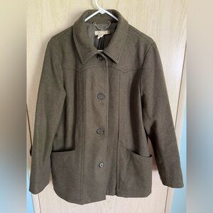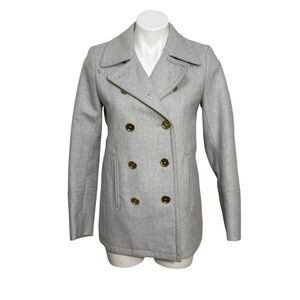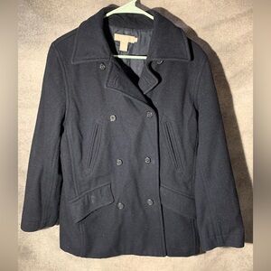 Chic and versatile black pea coat by J. Crew. Features classic button closure and tailored fit.