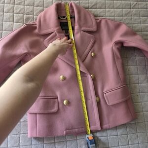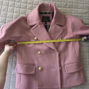 J.Crew peacoat in dusty rose color. Very warm. Superb quality material, I don't see coats like this in the stores very often. 80% nylon, 20% wool. Perfect condition, can't see any signs of wear. Pockets are still sawn in.