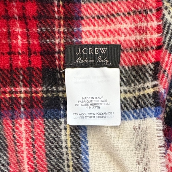 J.Crew Italian Plaid Wool Blend in Red, Black, and Cream