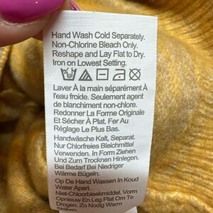 Please see measurements as this has been washed and dried so it's not a 2X now. Small hole in the sleeve.