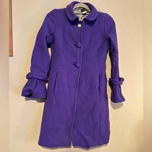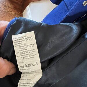 J.Crew Italian Stadium Cloth Wool Blend Hooded Coat Blue Faux Fur Trim Sz 8