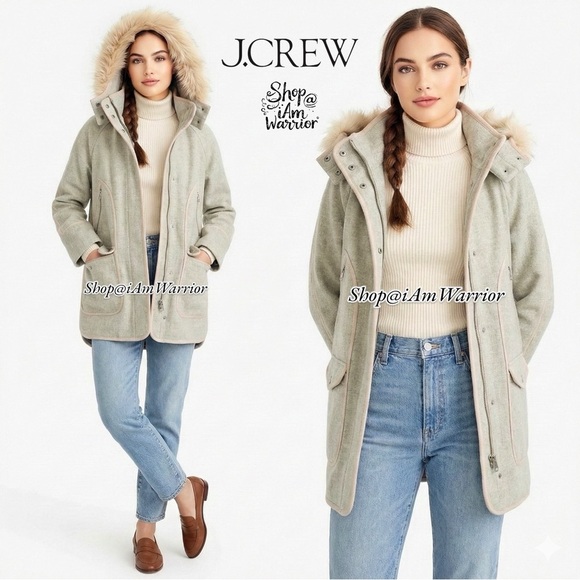 J.Crew Italian Stadium-Cloth sage Wool Coat with Faux Fur Hood *shop@iamwarrior