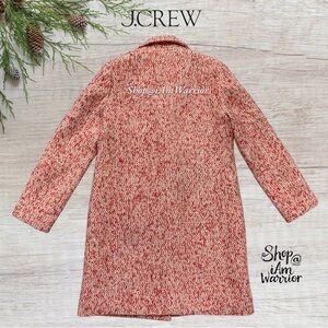 Step into classic sophistication with this stunning J.Crew topcoat, woven from luxe Italian tweed in a romantic pink-red flecked pattern. The double-breasted silhouette and structured lapels give it that timeless, polished feel, while the mid-weight fabric makes it perfect for crisp fall days and winter strolls.