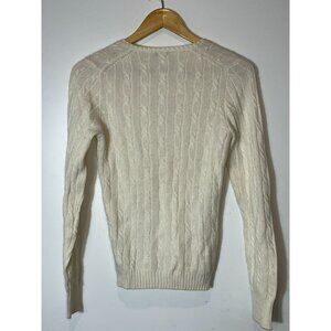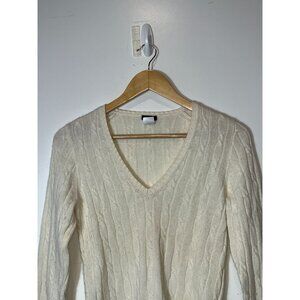 J.Crew Ivory Cable Knit Cashmere Merino Wool Angora V-Neck Sweater Small WOMENS