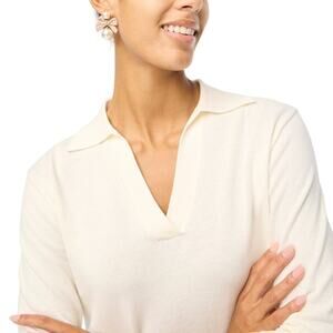 J.Crew Ivory Cotton Collared V-Neck Sweater Polo XL NWT Lightweight Knit