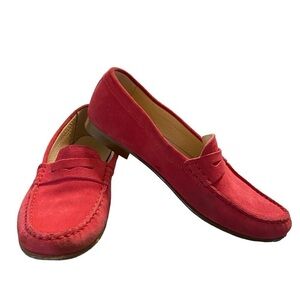 J.Crew James Suede Penny Loafers Pink Red Flats Made In Italy Women’s Si…