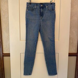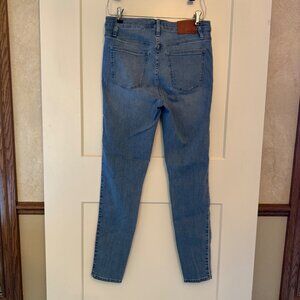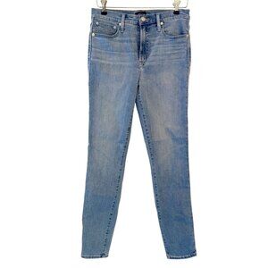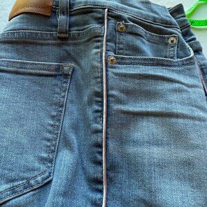 These high-rise skinny jeans offer a sleek silhouette with a stylish pink side piping detail. The light wash denim adds a relaxed yet chic vibe. Flat waist measures 15.5 inches. Inseam measures 30 inches. 10 inch rise. J.Crew women's size 29 tall. Smoke free home.