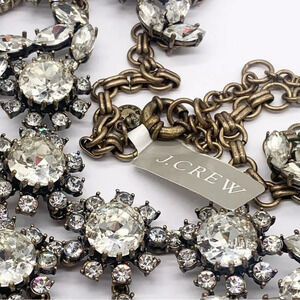 J. Crew Jeweled Flower Bib Necklace. Measures approximately 19.5”, which includes 2” extender.
