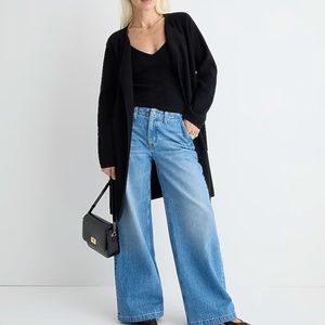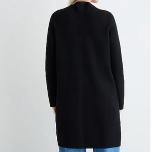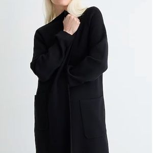 Our new favorite multitasking layer: This features a midlength...cut (so yes, it covers your bum), patch front pockets, an open cascading front and cozy knit fabric that toes the line between a cardigan and a jacket. Indoors or outdoors, we bet you won't want to take this one off.