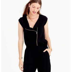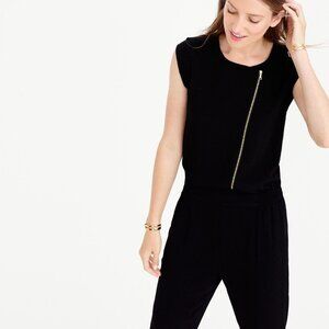 J.Crew Jumpsuit Black Sleeveless Asymmetrical Zip Front Skinny