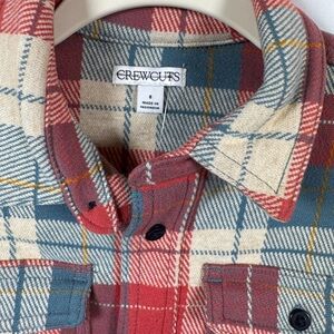 This J.Crew LS Seaboard Soft-knit shirt is brand new and has the original tags attached. The color is a plaid mix and kids size 8. See pictures for approximate size measurements and other product info. The logo tag on the inside collar has a line drawn through it.