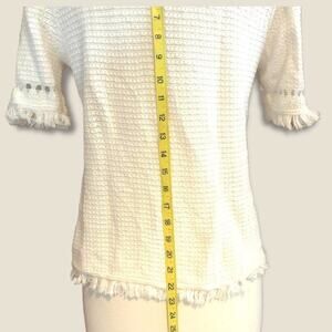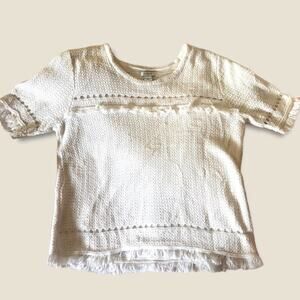 J.Crew Knit Top Medium White Short Sleeve Sweater Tee with Crochet Trim