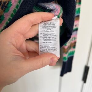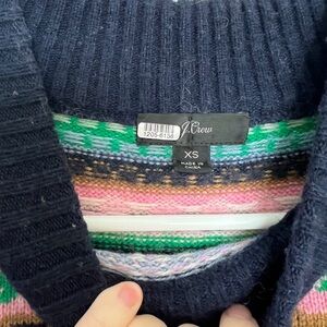 Colorful Fair Isle stripes give festive charm to this rib-trimmed J.Crew sweater.