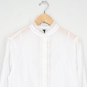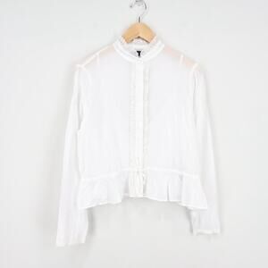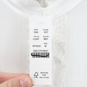 J.Crew Lace Trim Cinched Waist White Cotton Voile Top Size M NWT