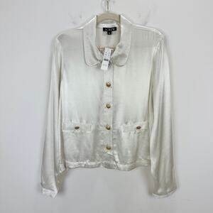 J.Crew Lady Shirt Jacket Luster Crepe Satin Viscose Gold Buttons Ivory Large NWT