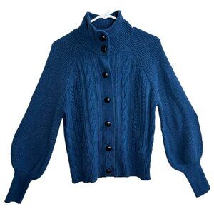 Elevate your cold-weather style with this premium J.Crew cardigan, crafted from a soft lambswool blend in a rich teal blue hue. The classic cable-knit texture, faux-leather buttons, and high mock neck create a polished, timeless look perfect for layering at work or on weekend getaways.