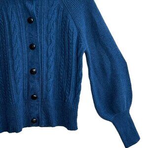 J.Crew Lambswool Cable Knit Teal Blue Button Cardigan Sweater M Cozy Fall Layer