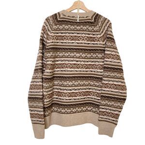 J.Crew Lambswool Fair Isle Crew Neck Sweated Beige Men's Sweater Size Large NWT