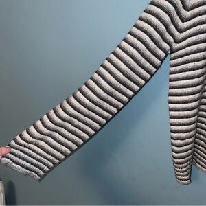 J.Crew Lambswool and Angora Striped V-Neck Button Neck Sweater Size Large