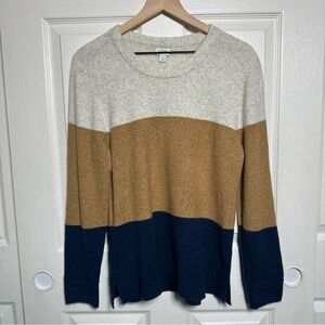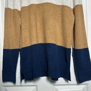 J.Crew Large Knit Sweater Striped Color Block Wool Blend Pullover Crew Preppy
