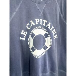 Cute and comfy J.Crew women’s crewneck sweatshirt in washed navy blue with Le Capitaine nautical graphic. Size XL. Soft, relaxed fit—perfect for casual wear, lake days, beach style, or everyday layering.