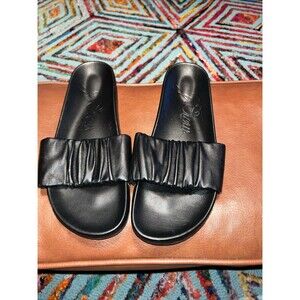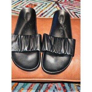J-Crew Leather Slides Ergo 1 Inch Pleated Chunklas Thongs Size 12