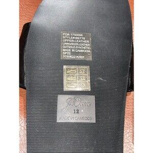 The J-Crew Leather Slides Ergo 1 Inch Pleated Chunklas Thongs in size 12 are a stylish and comfortable footwear option for women. These slip-on slippers feature a round toe shape, flat heel, and are made of leather with a rubber insole for added comfort. Perfect for casual occasions in the summer and spring seasons, these slides come in a classic black color with a solid pattern. The J-Crew brand ensures quality and a timeless style that can be paired with various outfits for a chic look.