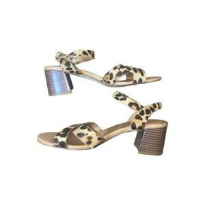 J.Crew Leopard Print Calf Hair Ankle Strap Low Block-Heel Sandals Size 8.5