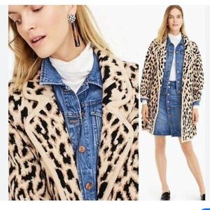 J. Crew Double Breasted Sweater Coat Leopard Sz S