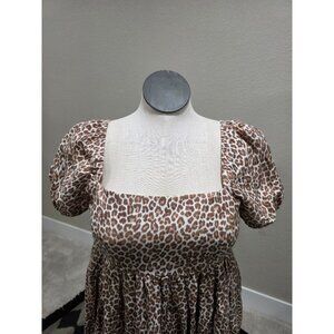 J.Crew Leopard Print Puff Sleeve Smocked Dress Size 12