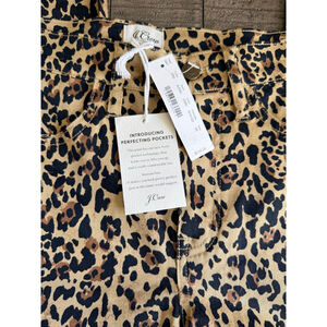 Chic and bold J.Crew leopard print pants in a flattering straight-leg silhouette. Made from a soft and structured cotton-elastane blend (97% cotton, 3% elastane) for comfortable stretch and a polished look. These pants feature a neutral tan base with an allover black and brown leopard pattern — perfect for adding a touch of style to your everyday or office wardrobe.