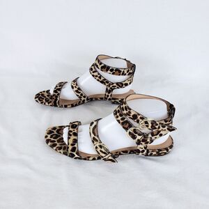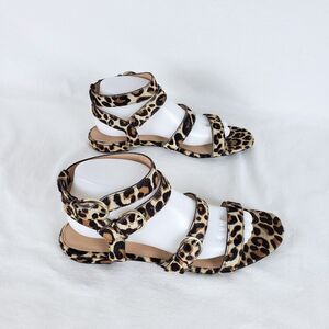 J.Crew Leopard Sandals Womens 9 Ankle Strap Calf Hair Strappy Resort Vacation