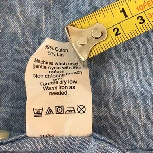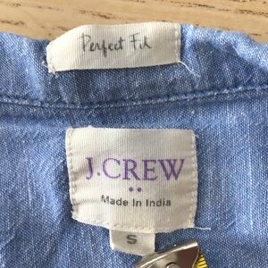 J. Crew size S Perfect Fit button up shirt. Color is light blue. 2 front pockets, see photos for fabric. GUC, one small stain on back, see photo. A classic must have for every closet!