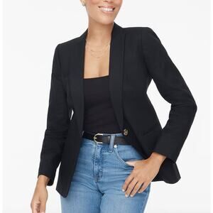 J.Crew Linen Blend One Button Blazer Jacket Classic Minimalist Black US 00 NWT