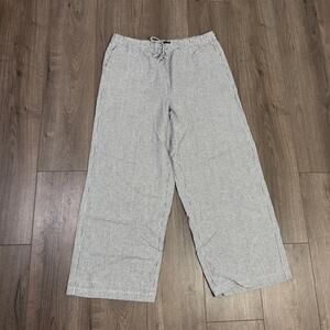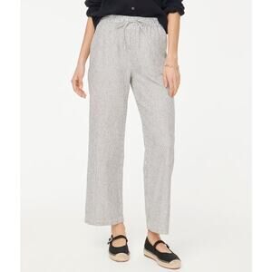 J.Crew Linen Blend Slim Wide Leg Drawstring Pants 14 Black White Striped Relaxed