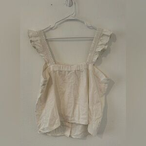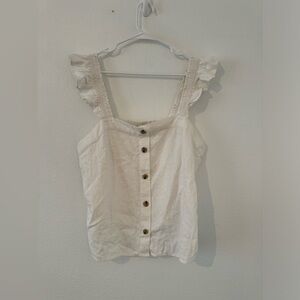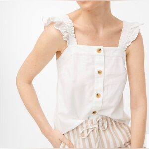 J.Crew Linen Blend Tank Top Ruffle Straps Button Front Feminine Coastal NWT XL