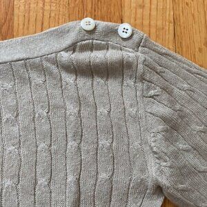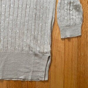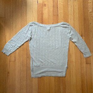 J.Crew Linen Cable Knit Sweater. Very light weight. Fine rib knit cuffs and hem. Boat neck. Pearl-like buttons on shoulder.