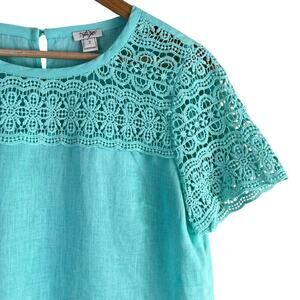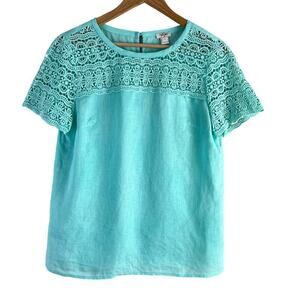 J.Crew Linen Lace Short Sleeve Tee Top in Mint Green, Size 2
