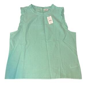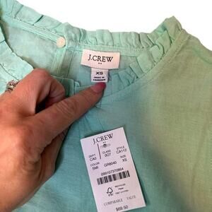 J.Crew Linen Ruffle Neck Sleeveless Blouse XS Sunwashed Mint Green NWT