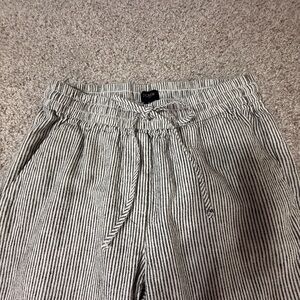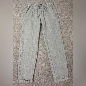 J.Crew Linen Striped Elastic Waist Casual drawstring Pants Black white Size 2
