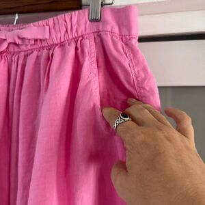 J Crew Linen Vibrant Pink Full Skirt with Drawstring and Pockets Sz 8